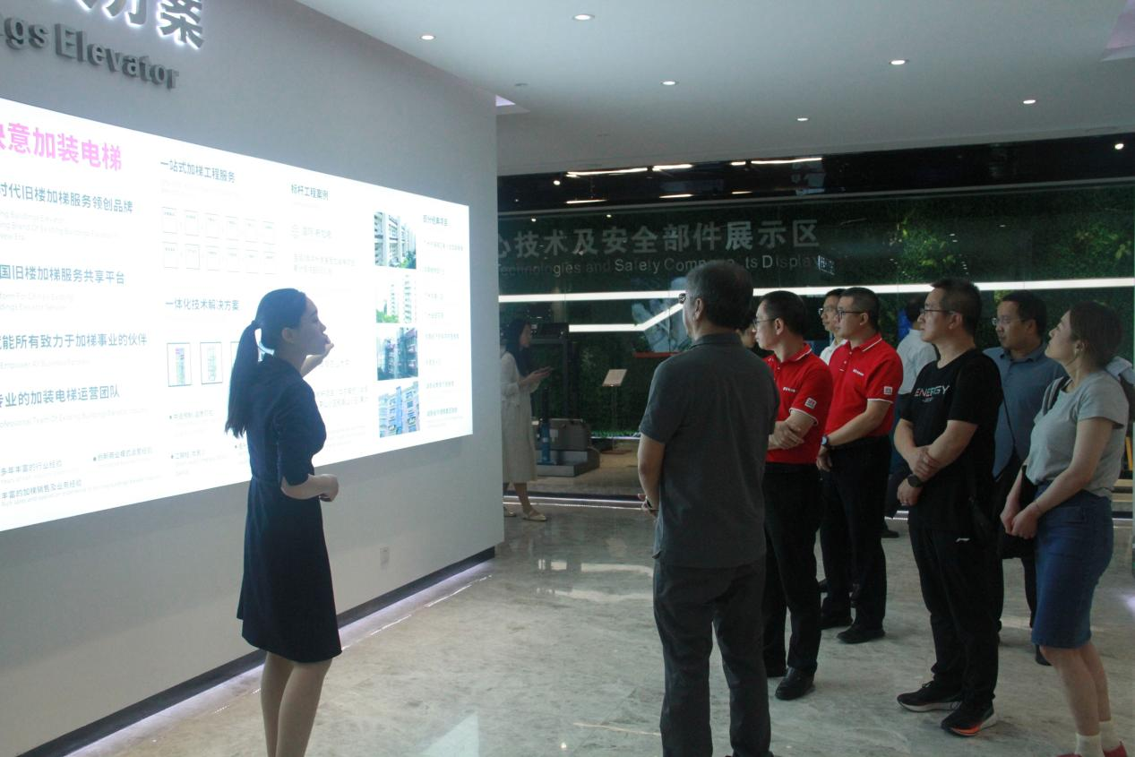 在中國特檢院專家組的參觀行程中,快意電梯的展廳是首站。這里,專業技術人員通過深入淺出的講解,全方位展示了快意電梯在技術研發、產品創新的歷程與成果。從早期的探索嘗試,到如今在電梯行業的技術領航地位,每一個階段的創新故事都深深吸引著在場的專家們。快意電梯對技術創新的持續投入與專注執著,得到了專家組的高度認可,他們對快意電梯展示出的亮點成果表示由衷的贊賞。